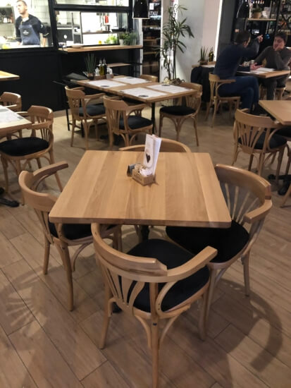 Kružne i pravougaone ploče od kvalitetnog punog drveta, stvaraju topliji ambijent i prijatnu i lagodnu atmosferu.